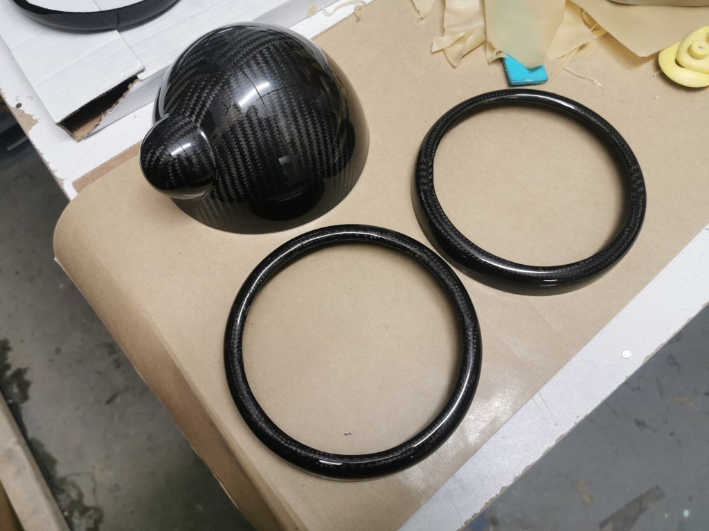 The carbon-fibre headlight bowls with the gloss clear-coat finish have been on order for a few weeks now along with a few other bits and pieces. David and his team at Classic Carbon are working on them and I hope to receive the bowls at about the same time as kit delivery.