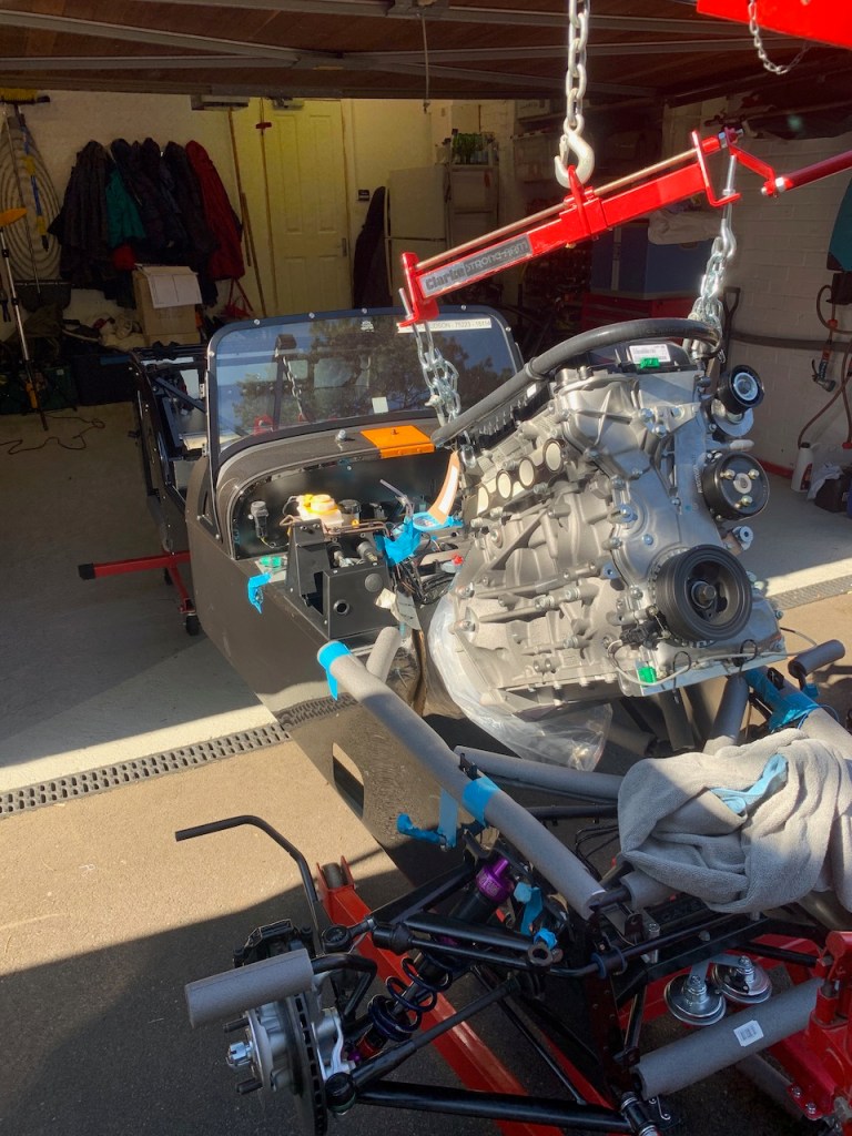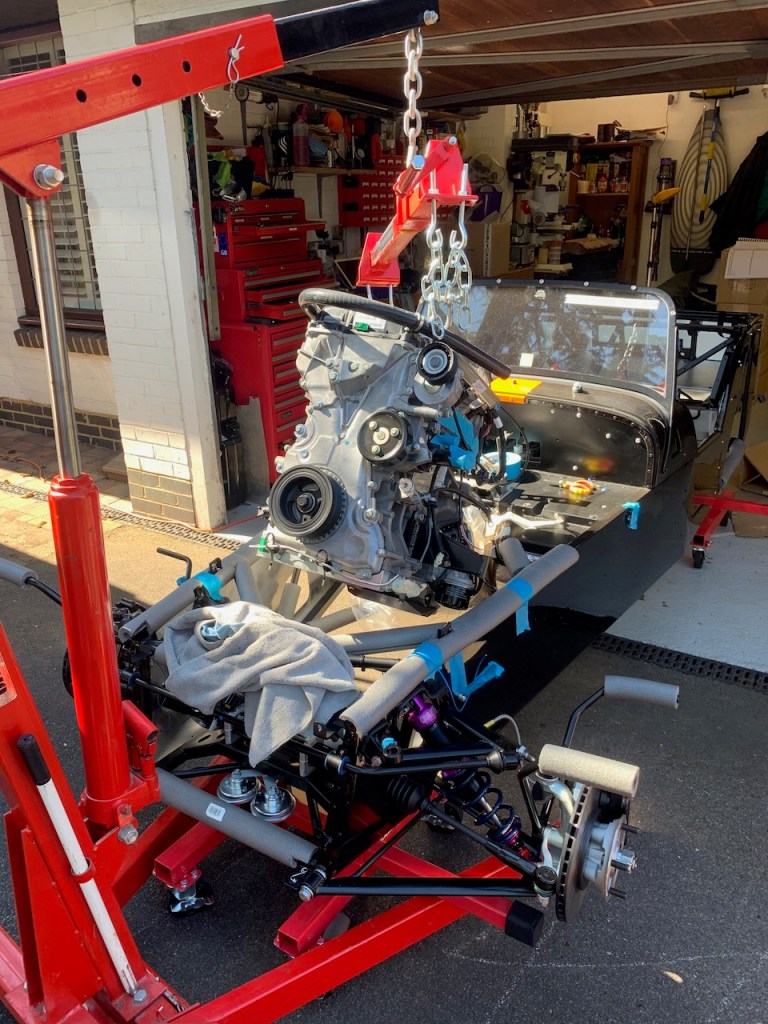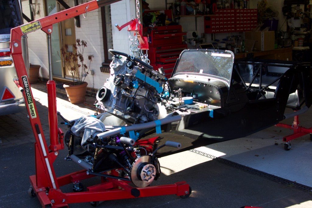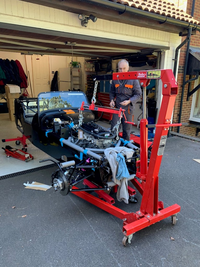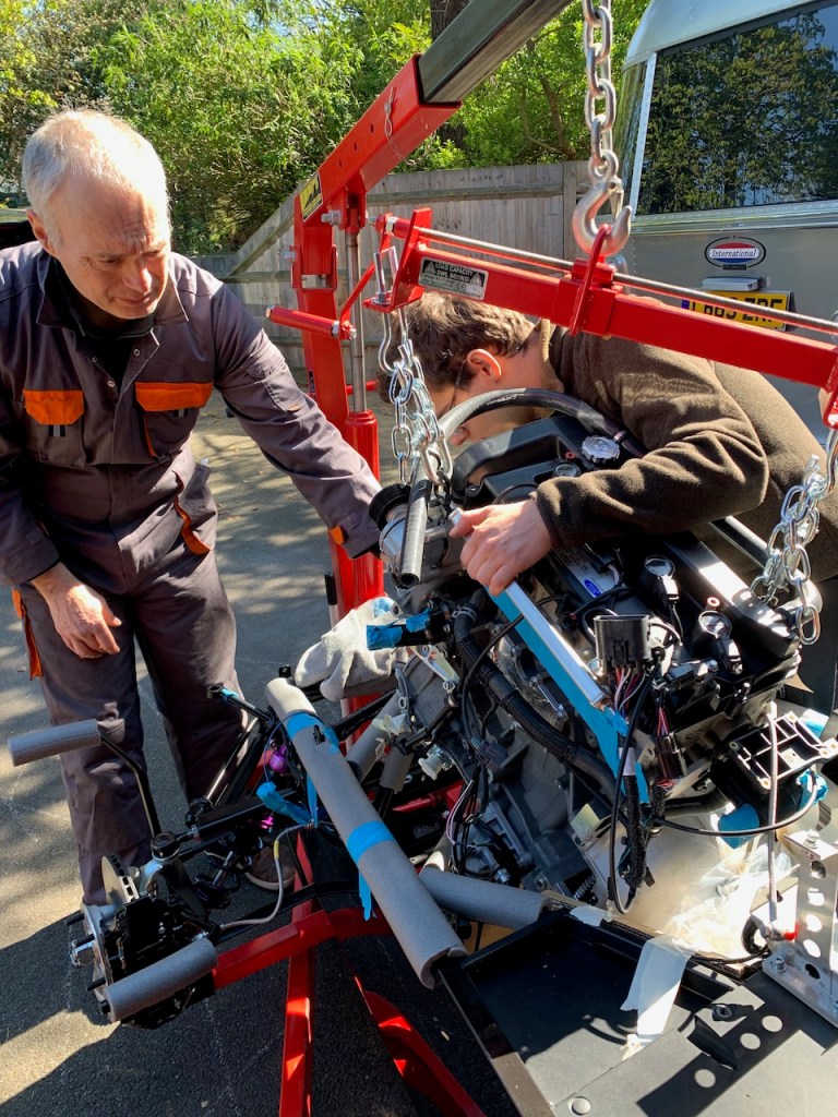 The installation itself is all about moving in small steps, either height, reach or angle, taking care at all times that the engine does not foul the chassis and most importantly does not trap any fingers as it is gradually lowered into place.