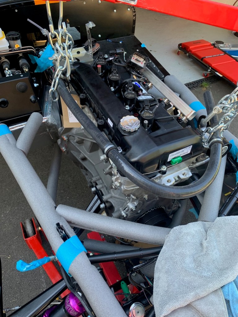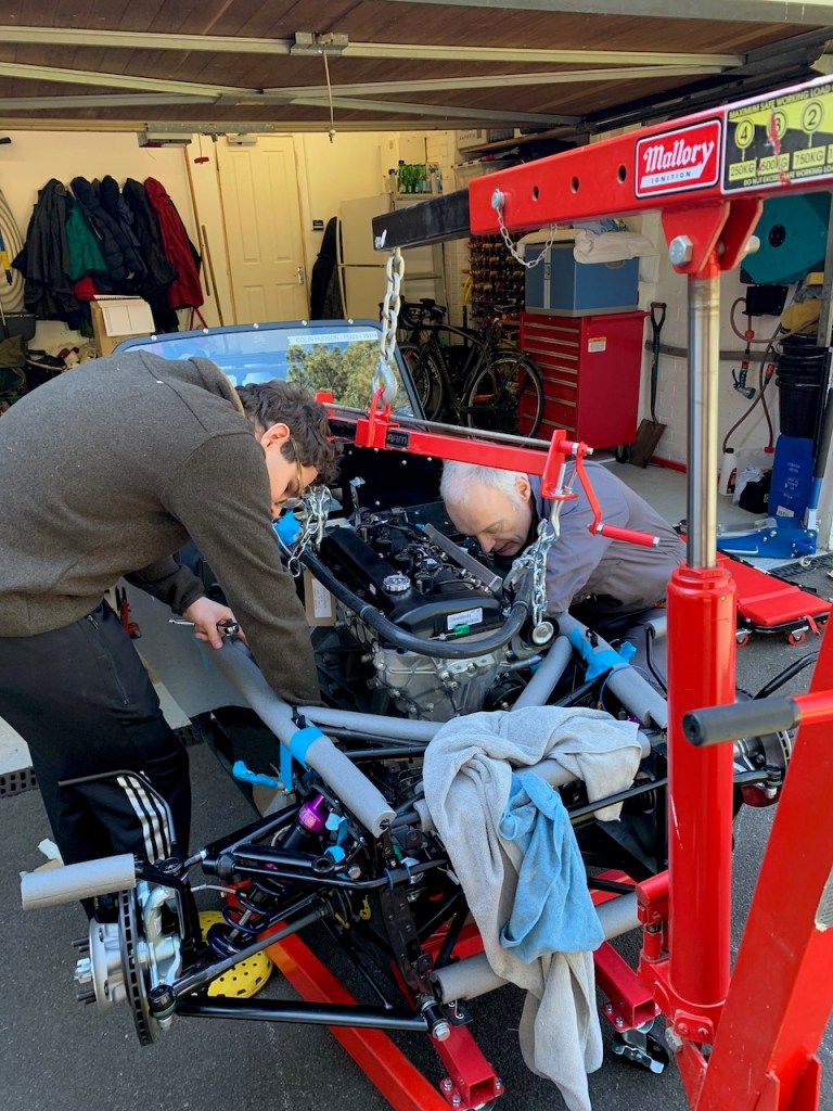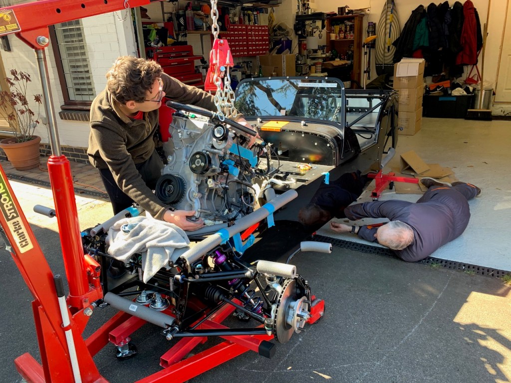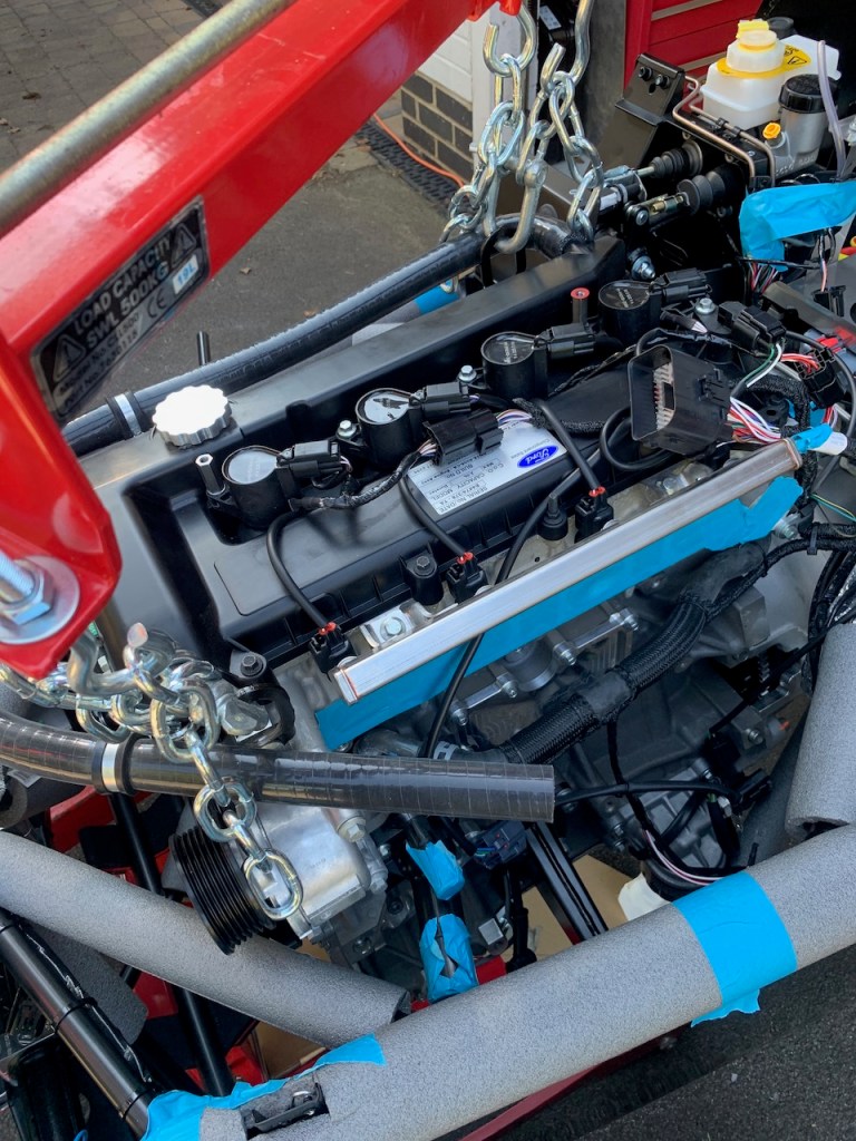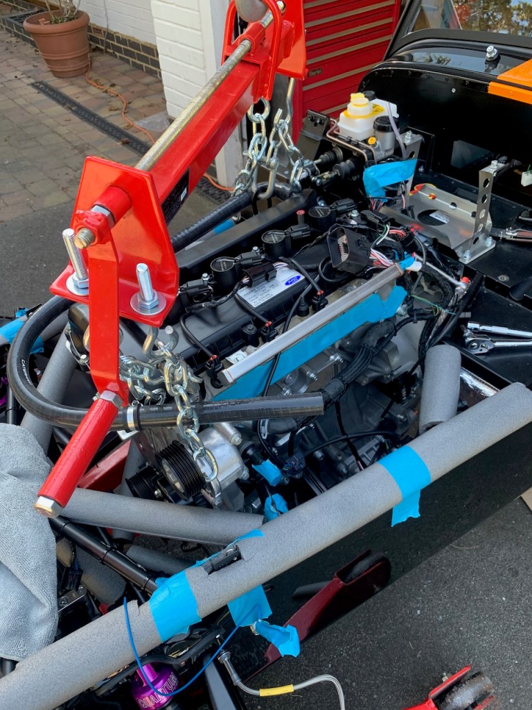 The installation itself is all about moving in small steps, either height, reach or angle, taking care at all times that the engine does not foul the chassis and most importantly does not trap any fingers as it is gradually lowered into place.