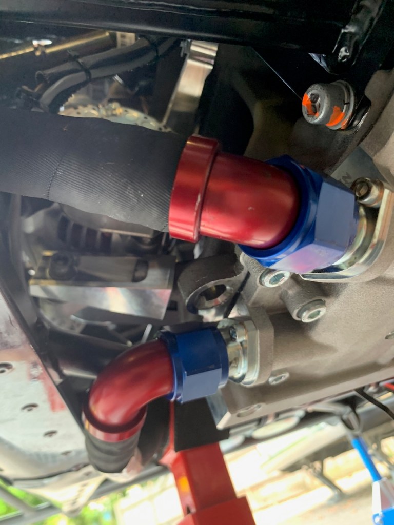 - The pipe exiting the front of the oil cooler plate is clear of the chassis but runs close to the 90 degree corner of the rear wishbone bracket – I think I will take a file to radius this corner and then glue some IVA trim to the edge for piece of mind.