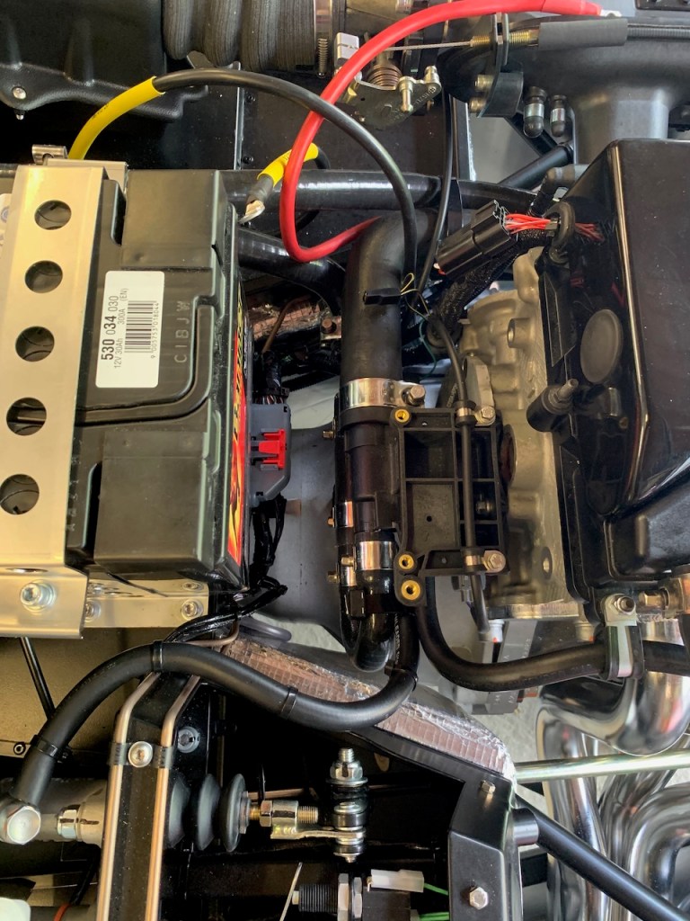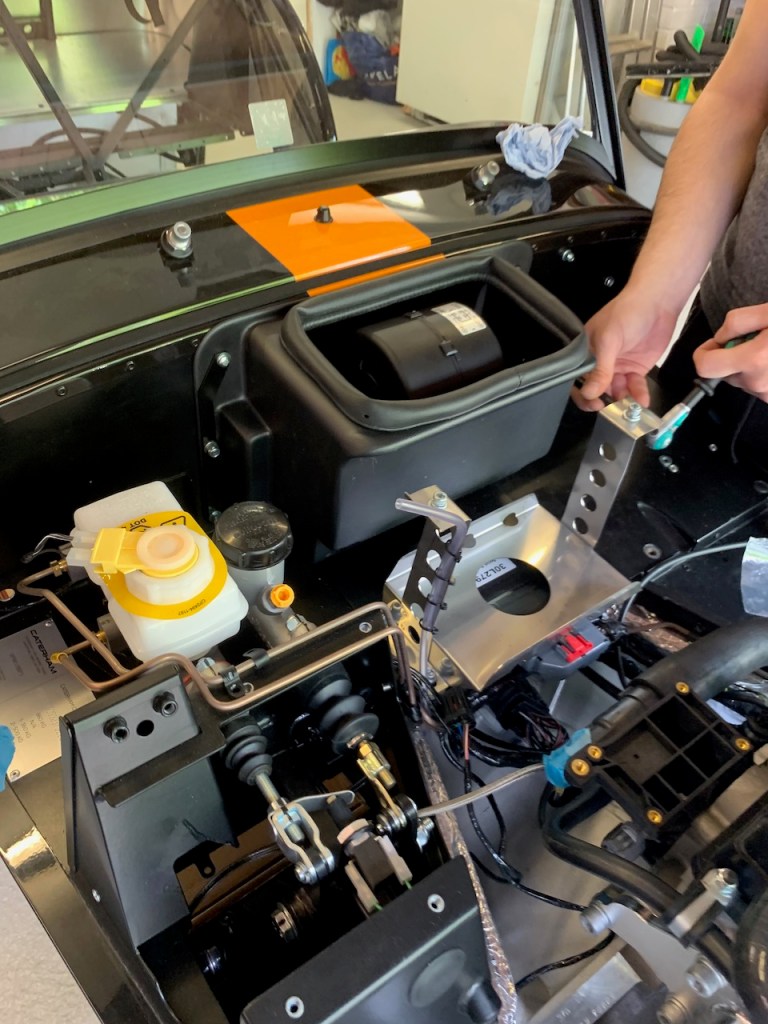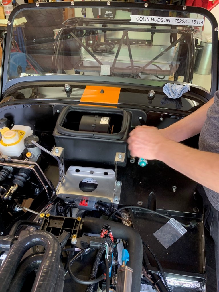 Next up is the heater control valve and cable. The heater control is a simple push / pull device just above the driver’s right knee. As other builders have noted the hole in the scuttle needed enlarging in order for the cable to pass through.